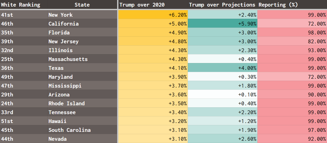 Jackson is one of many millions of Black and Latino men who dropped a ballot in the box for Donald Trump this election. As the New York Times has already observed, Trump saw massive gains among non-white voters this election, gaining more than 13% in Hispanic-majority counties, 10% in Native American majority counties, and nearly 3% in Black-majority counties. These gains have affirmed Trump’s strength in the increasingly diverse states of Florida and Texas, and they’ve made Democrats squirm in New Jersey, New York, and Illinois, where Trump overperformed many election models. Trump’s popularity among young Black and Latino men may well have won him the election in Philadelphia and Detroit, where he won 5% and 10% more votes than in 2020, respectively.
